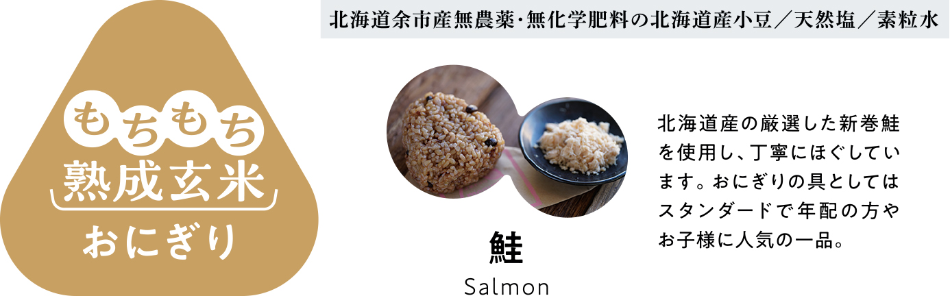 こちらの商品は、北海道苗穂町に店舗を構える「玄米ドコロ メグリメグル」のもちもち熟成玄米おにぎりです。